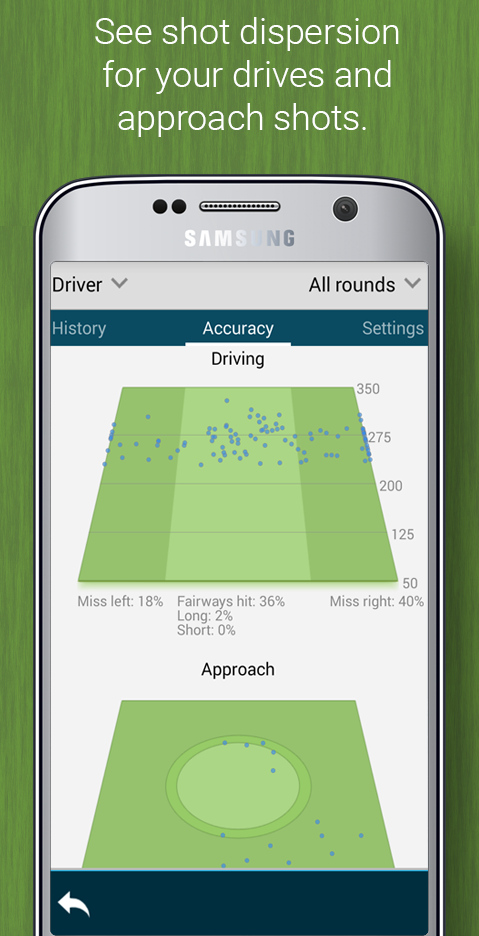 Tippen Sie einmal auf Shot Tracker . Zeichnen Sie ganz einfach Positionen und Schläger auf und messen Sie die Länge Ihrer Schläge. Verwenden Sie es für Fahrten oder für jeden Schlag vom Abschlag bis zum Grün. Überprüfen Sie die Aufnahmen auf der Karte und teilen Sie sie mit Freunden